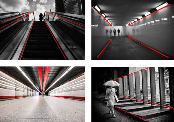 این ترکیب بندی در کادربندی عکس ها باعث ایجاد پویایی و جذابیت در عکس میشود این خطوط توجه بیننده را جذب می کند
